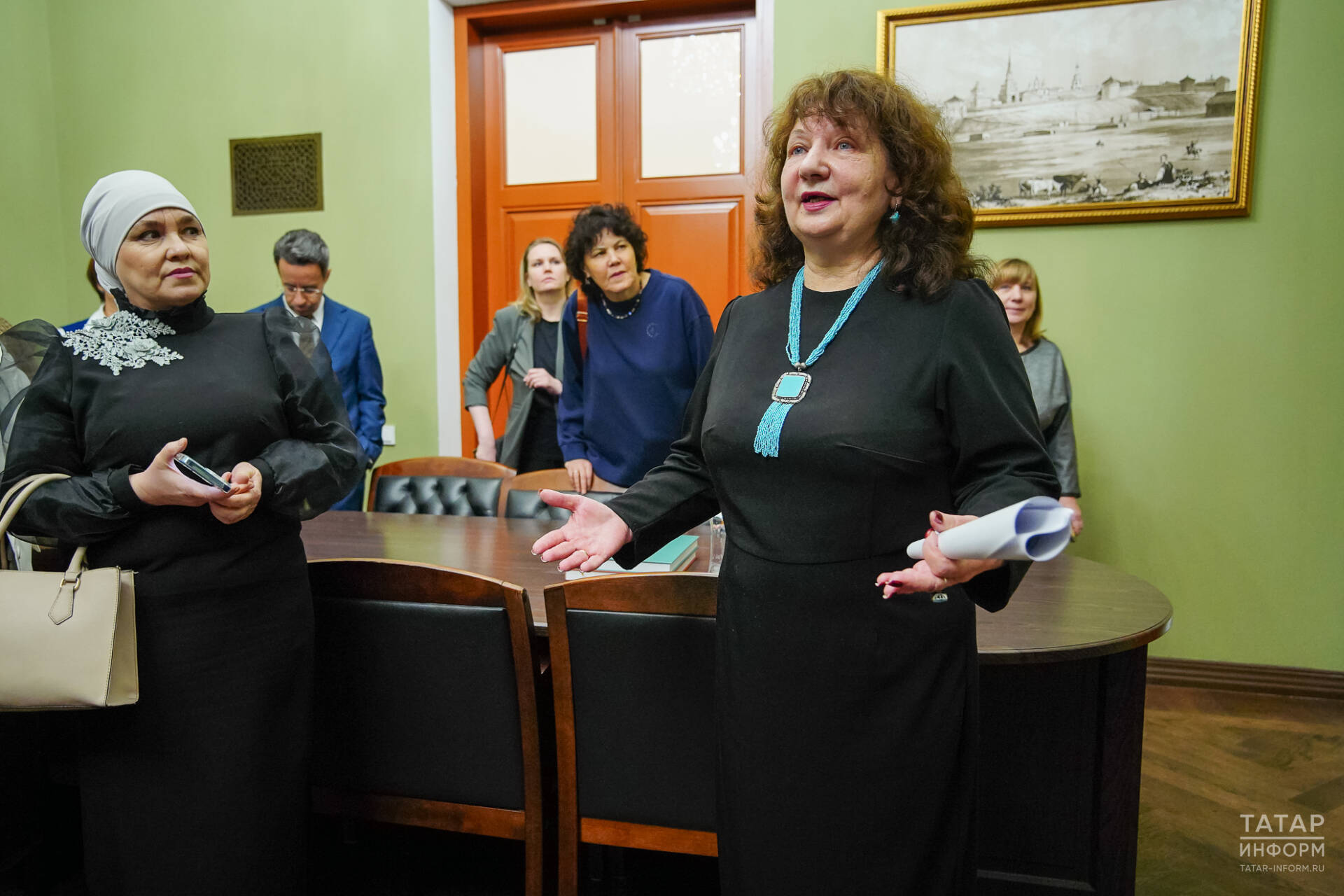 Сăмах май, театр хуçи Раççей тата Тутарстанăн театрпа обществăлла ӗçченӗ, ТР искусствăсен тава тивӗçлӗ ӗçченӗ Дмитрий Туманов. Шел те, хăй вырăнта марччӗ. Çапах экскурсовод ун кабинетне кӗрсе кăтартрӗ. «Тӗлӗнмелле çын вăл, Дмитрий Александрович. Унра чăваш, вырăс тата ытти халăх юнӗсем пӗрлешнӗ», – терӗ экскурсовод.